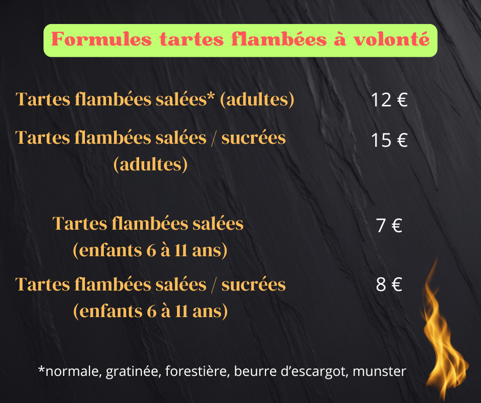 Une option pizza est possible pour un supplément de 1€ / personne.
